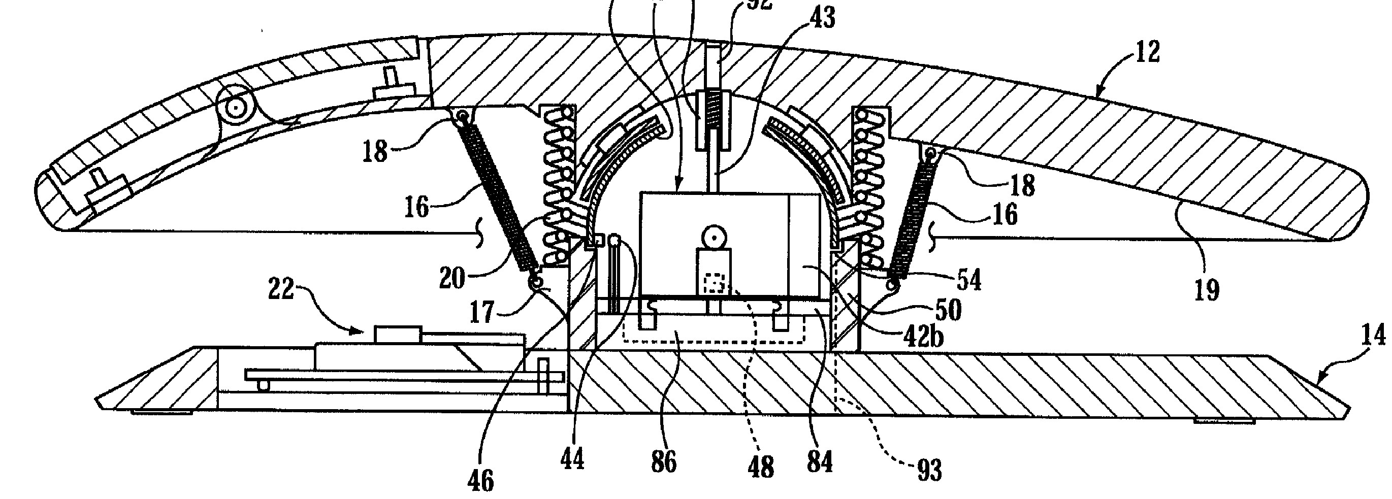 TiltMouse™ US Patent 6727889 looks like an ordinary mouse, but provides the functionality of a mouse and a joystick in one package. While looking at the pictures above; imagine a regular mouse that you split in half so that the palm portion and the base that touches the table are separated. Then, insert a joystick that has the stick shortened between the two halves. The palm half will attach to the top of the shortened joystick shaft and the base of the joystick is attached to the bottom part of the mouse. You will still have a mouse that acts like a mouse when you push it around like you would normally push a mouse. If the attached palm portion moves when you are pushing it as a mouse, that movement is ignored. The Joystick portion is activated by either pressing down on the whole top of the mouse or by clicking one of the mouse buttons. The top cover press technique has the added benefit of making the mouse base stick to the table and allowing the rotate ( yaw ) to take effect. By activating the the top and then rocking it forward and back it can control screen scrolling up and down or by rocking left and right, it can scroll the screen left and right. By rocking it at any point in-between, it can perform a diagonal scroll. All of these features combined create a great business and game controller and work better than Microsoft's Tilt Wheel that lacks the yaw (rotate) function. Also, your whole hand has far more strength to quickly manipulate the control. It also has a greater range of motion allowing a more precise control of the scrolling and the cursor. |